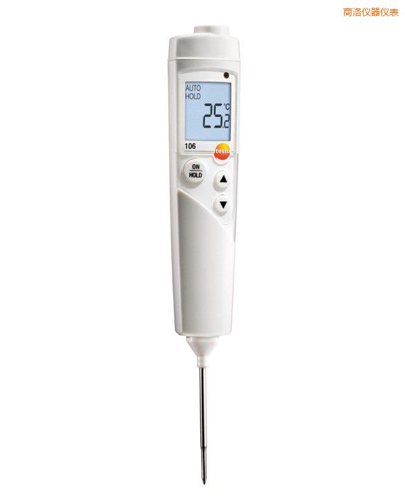 testo 106 具有響應(yīng)快、精度高的特點(diǎn)。適用于食品生產(chǎn)車間、餐飲、酒店、工業(yè)廚房、超級市場等的快速測量。該款溫度儀外形小巧、經(jīng)濟(jì)實(shí)用。配備的探頭極細(xì)而堅(jiān)固,非常適合測量小尺寸食品的中心溫度。